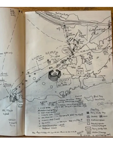 Negotiations almost led to my acquiring Rattlesnake Key off the coast of the Skyway Bridge between Tampa Bay and North Manatee County. I would have renamed the 780 acre Islands Skyway Isles. I envisioned a car-less, eco-friendly community and resort with glass bottom kayaks, pressed seashell roads, and powered entirely by Tesla Power banks and solar. I received Letters of Interest to underwrite the purchase for up to $10M. Ultimately the bid failed because I could not raise enough commitments for Phase I capital and had to abandon the bid. Iconic architecture, evoking colors and shapes of the blues and whites of sailboats and the sea, I can still see it. I am including some of my rudimentary sketches and plans , promotional folios and videos.